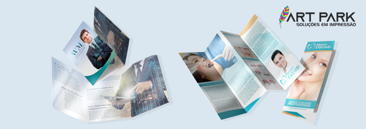 Ao contrário do flyer, folders possuem maior quantidade de informações e podem receber um acabamento especial mais sofisticado, tendo 1, 2 ou 3 dobras paralelas tornando sua aparência mais organizada dos textos nos espaços além de poder ter acabamento mais refinado como por exemplo verniz total ou localizado, proporcionando ainda mais qualidade e destaque para as informações anunciadas. Geralmente seu tamanho 21x30cm, 31x42cm etc e seu custo é maior por esses detalhes a mais.